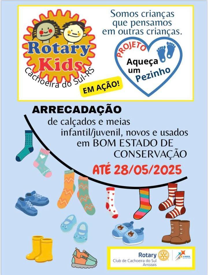 O Rotary Kids de Cachoeira do Sul está iniciando mais um projeto em 2025: Aqueça um pezinho. Caixas de coleta estão sendo distribuídas.