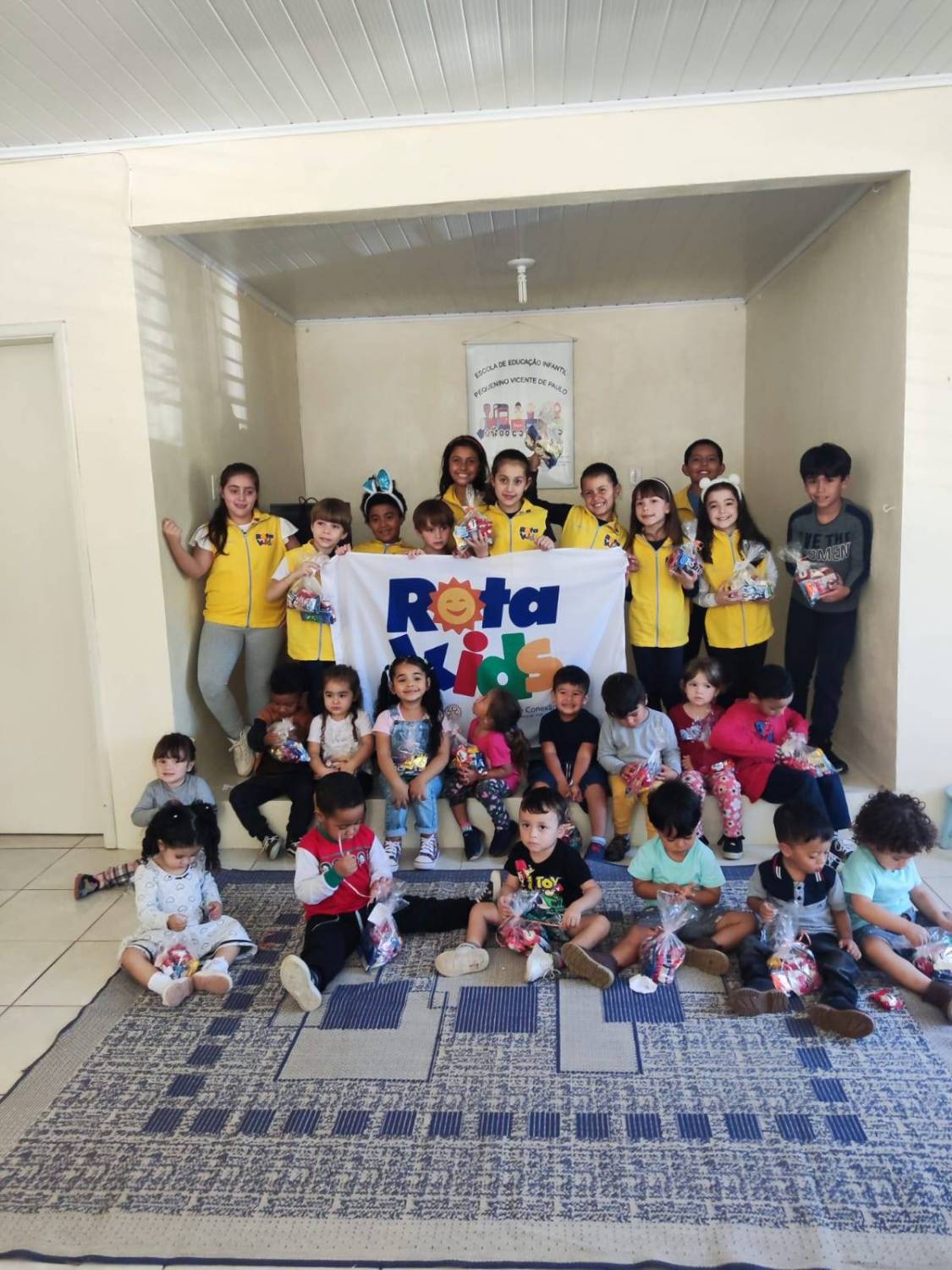 A ação, idealizada e realizada pelas crianças do RotaKids Bagé Conexão, contou com o apoio do Rotary Club de Bagé Campanha, demais clubes padrinhos, familiares, apoiadores e levou momentos de doçura e felicidade aos alunos da Escola de Educação Infantil Pequenino Vicente de Paula.