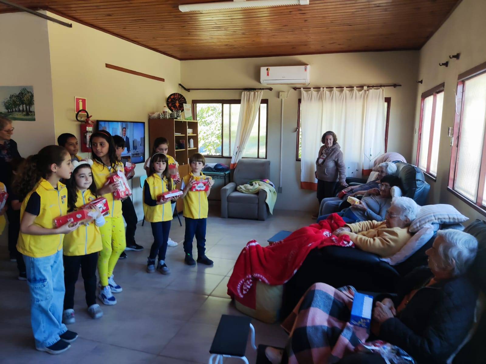 A ação, idealizada e realizada pelas crianças do RotaKids Bagé Conexão, contou com o apoio do Rotary Club de Bagé Campanha, demais clubes padrinhos, familiares, apoiadores e levou momentos de doçura aos Idosos da Casa Dia.