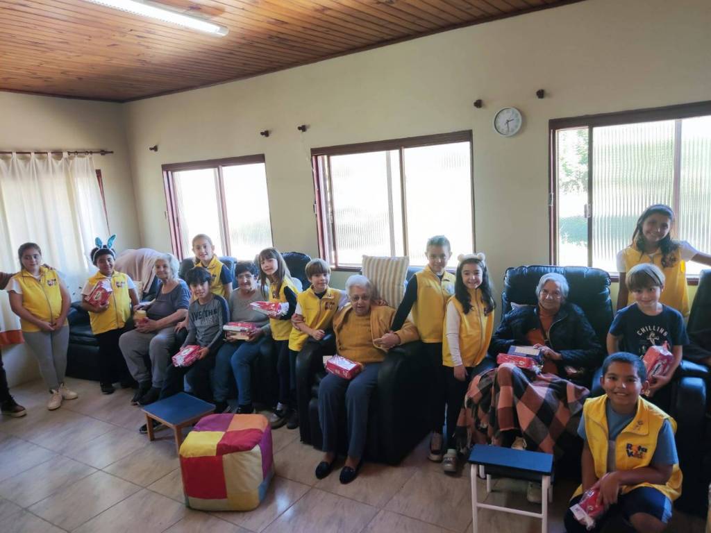 O Rotary Club de Bagé Campanha acompanhou o RotaKids Bagé Conexão nas doações de doces e chocolates aos idosos da Casa Dia