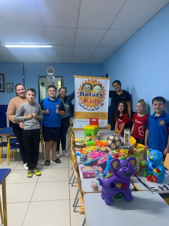 Hoje, 23 de abril de 2025, os associados do ROTARY KIDS DE CACHOEIRA DO SUL tiveram a alegria de fazer a entrega de brinquedos para a EMEI Nossa Senhora Aparecida, no Bairro Bom Retiro. Uma pequena campanha de doação entre os associados do Rotary Arrozais para essa açãodos Kids, por ocasião da Páscoa. Os brinquedos tem o objetivo de complementar as salas de atendimento das crianças dessa escola. Foram recebidos pela Diretora Ana Luisa Brochi que ficou muito feliz com a doação recebida.