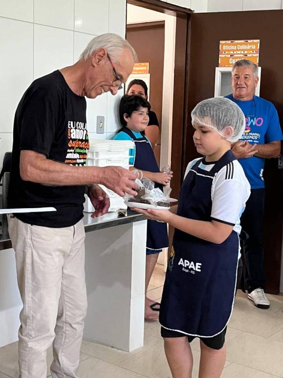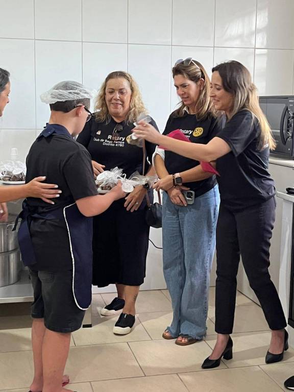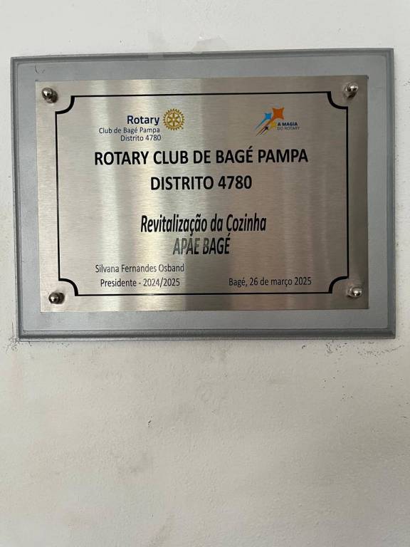 No dia 26 de março de 2025, aproveitando a visita da Governadora do Distrito 4780, Patrícia Parreira, foi realizada a entrega dos móveis e equipamentos para a cozinha da APAE Bagé, que foram adquridos com recursos obtidos através da inscrição, pelo clube, do projeto "Revitalização da Cozinha", perante a Vara de Execuções Criminais - VEC. Além da presença da Governadora, estiveram presentes algumas companheiras do clube, sua presidente Silvana Osband, o presidente da APAE Marco Antônio Borba Bidone, a gerente a APAE FErnanda Oliveira, a nutricionista, bem como pessoas especiais e incansáveis que dedicam seu tempo a esse trabalho lindo. Com certeza será muito bem aproveitado pelos alunos, que entregaram aos presentes uma das deliciosas receitas feitas por eles.