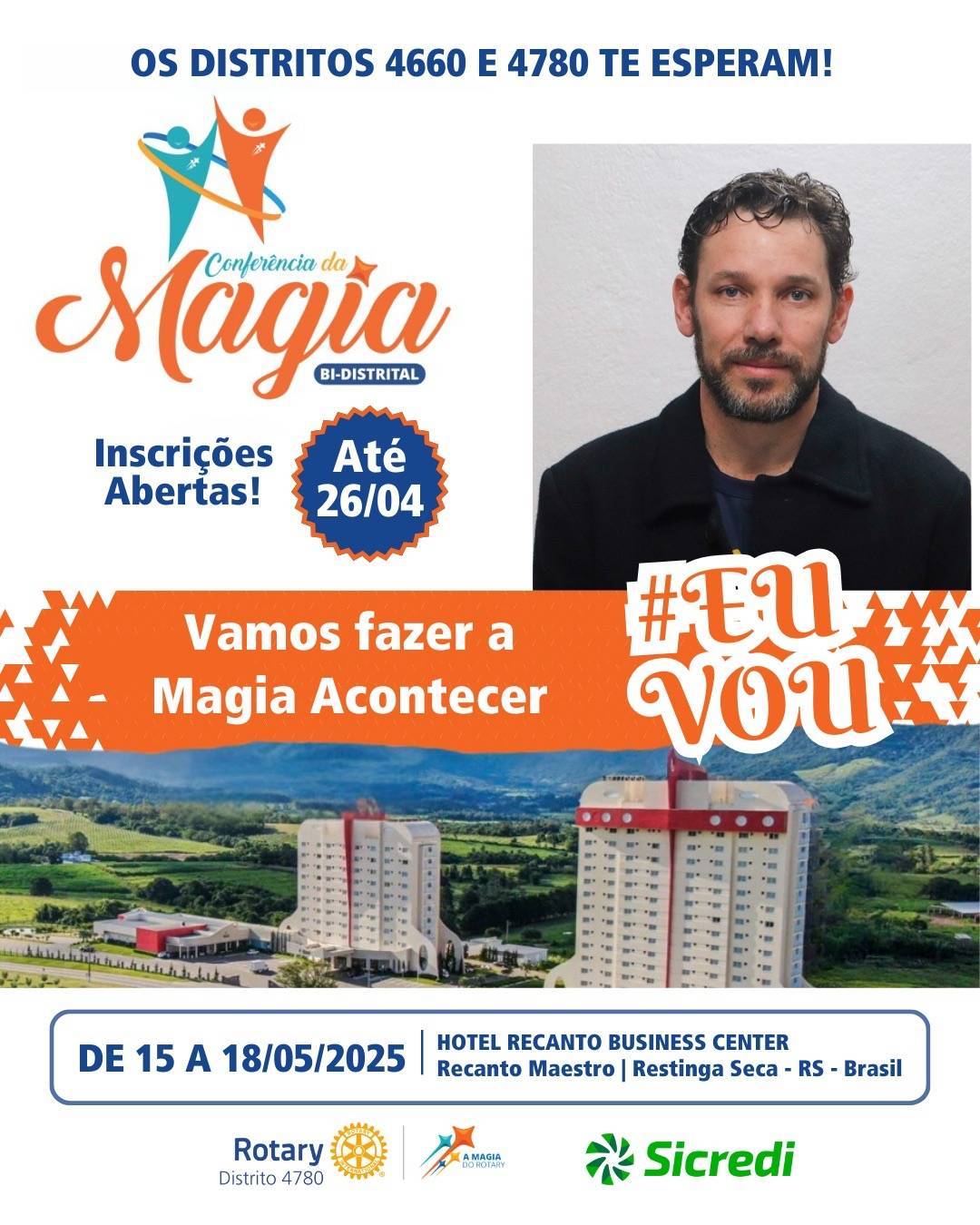 Nós vamos à conferência para viver a Magia do Rotary! Serão dias de conexão, aprendizado, inspiração e muito companheirismo!