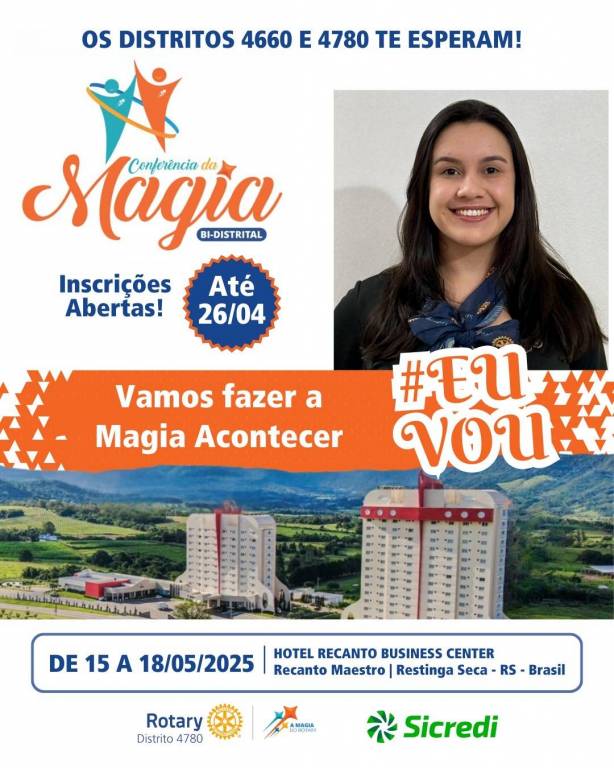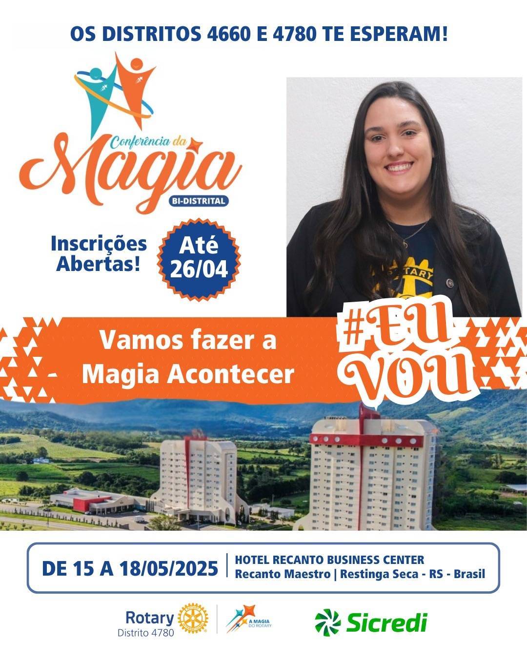 Nós vamos à conferência para viver a Magia do Rotary! Serão dias de conexão, aprendizado, inspiração e muito companheirismo!