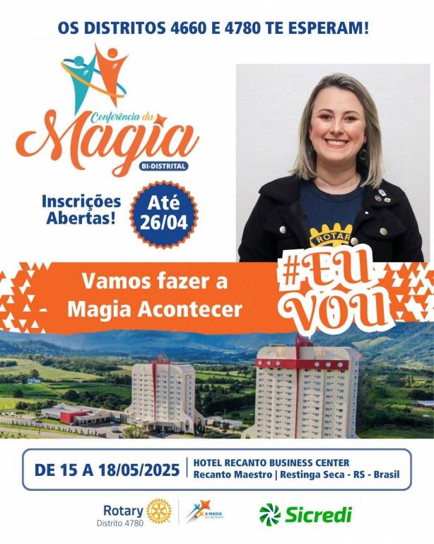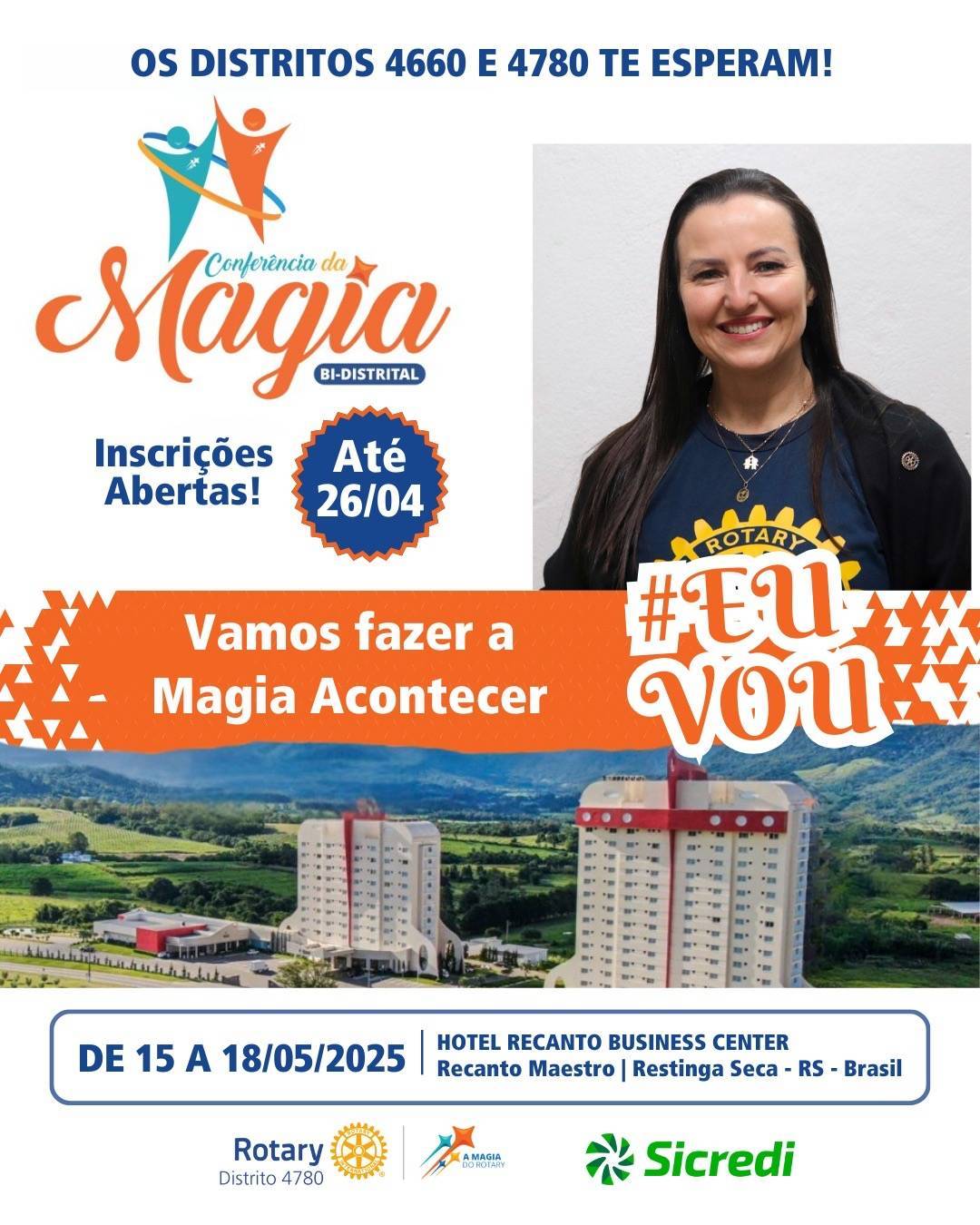 Nós vamos à conferência para viver a Magia do Rotary! Serão dias de conexão, aprendizado, inspiração e muito companheirismo!
