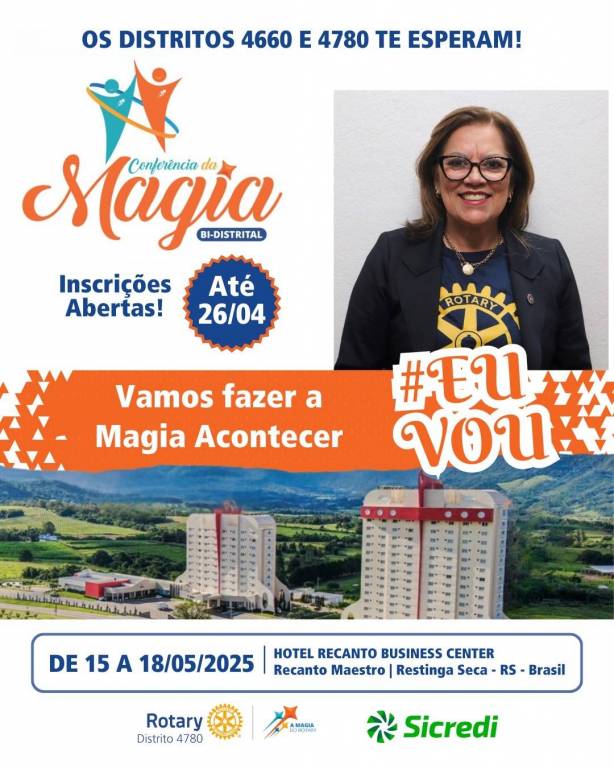 Nós vamos à conferência para viver a Magia do Rotary! Serão dias de conexão, aprendizado, inspiração e muito companheirismo!