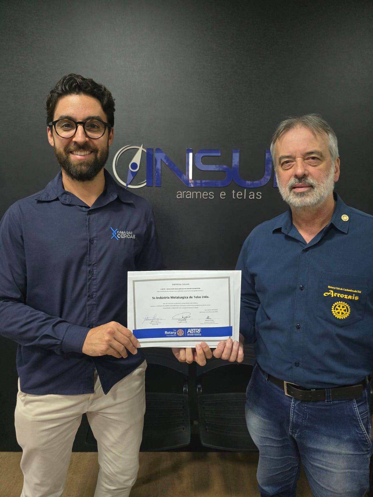 Entrega de Certificado de Empresa Cidadã para INSUL, pelo 3º ano de participação no Programa que visa fortalecer os Projetos Sociais do Rotary. Parabéns e obrigado pela parceria.