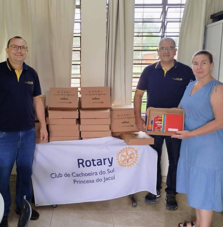 Nesta quinta-feira, dia 20, o Rotary Club Princesa do Jacuí, representado pelos companheiros Nelson Azevedo Jr. e Jocemar Santos, realizou a entrega de kits escolares para as crianças da Escola Municipal de Ensino Fundamental Imperatriz Leopoldina, localizada na comunidade Três Vendas, no Faxinal da Guardinha.