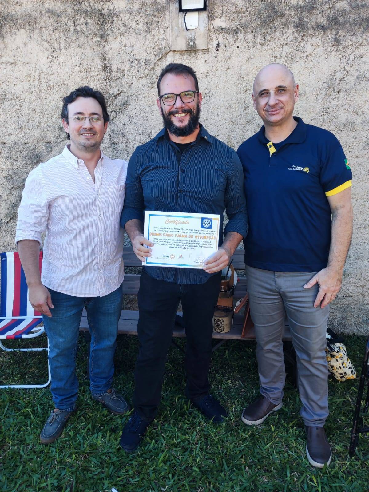Rotary Bagé Campanha recebe seu mais novo companheiro Dieimis Fábio Palma de Assumpção na festiva do clube.