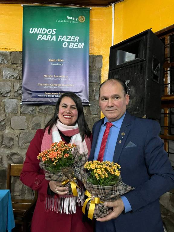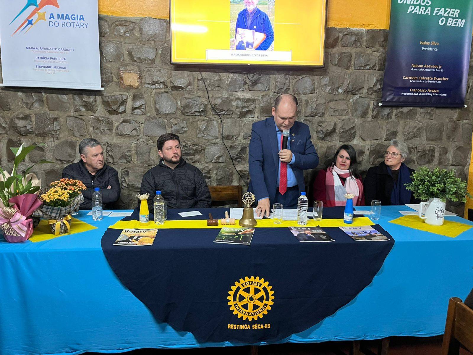 Na noite de quinta-feira, 03, o Rotary Club de Paraíso do Sul esteve representado na posse do novo Presidente e Conselho Diretor para o Ano Rotário 2025-26, do Rotary Club de Restinga Sêca. A presidente, Mariele Milbradt, juntamente com os companheiros, Mara Cardoso, Gladis e Daniel Friedrich, acompanharam a posse do companheiro, Isaias Rodrigues da Silva, que assumiu a presidência do clube vizinho. Também foi oportunidade de agradecer e parabenizar o presidente Ano Rotário 2024-25, Eldo Falk e toda a sua equipe pelo trabalho desenvolvido. Sucesso aos novos dirigentes.