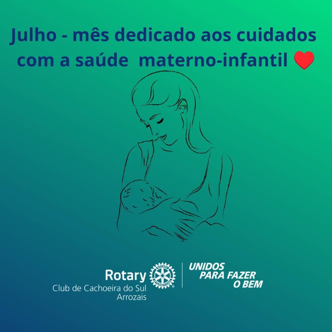 Julho é o mês dedicado à Saúde Materno-Infantil pelo Rotary Internacional. O Rotary International foca nesse tema para promover o bem-estar de mães e crianças, oferecendo apoio em áreas como acesso a cuidados de saúde de qualidade, nutrição adequada e desenvolvimento saudável.