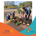 Plantação de florzinhas na praça e limpeza do marco Rotário