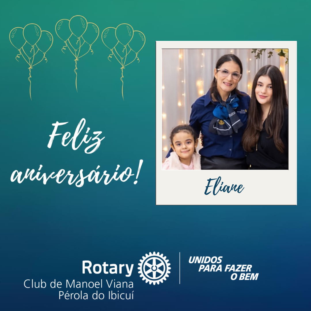 Receba o carinho e os votos de felicidade de todos os companheiros do Rotary Club de Manoel Viana - Pérola do Ibicuí 🎂🎈