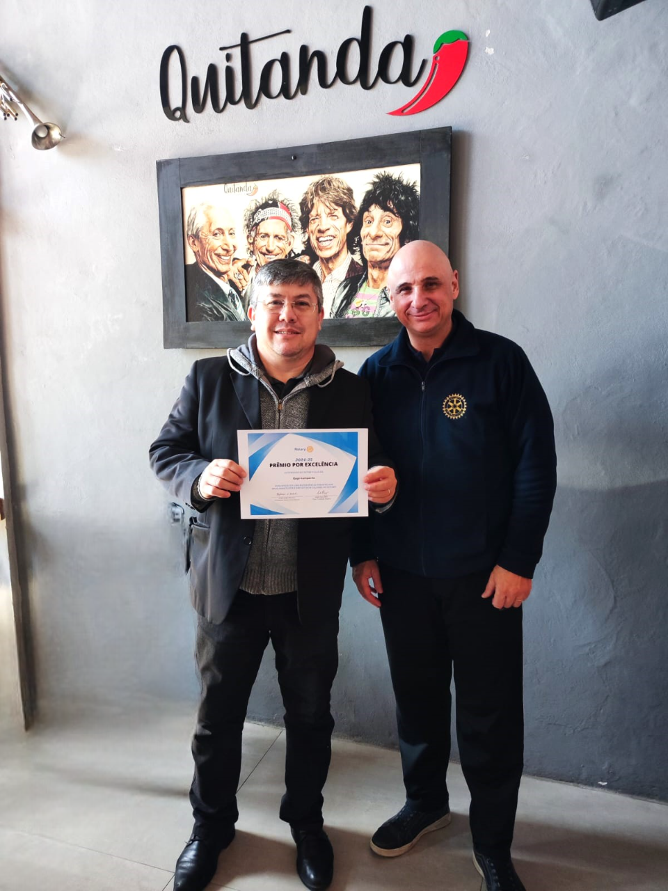 Rotary Bagé Campanha entrega o certificado Prêmio por Excelência do Rotary International a Carlos Magno, Presidente 2024-25, o clube recebeu essa honraria