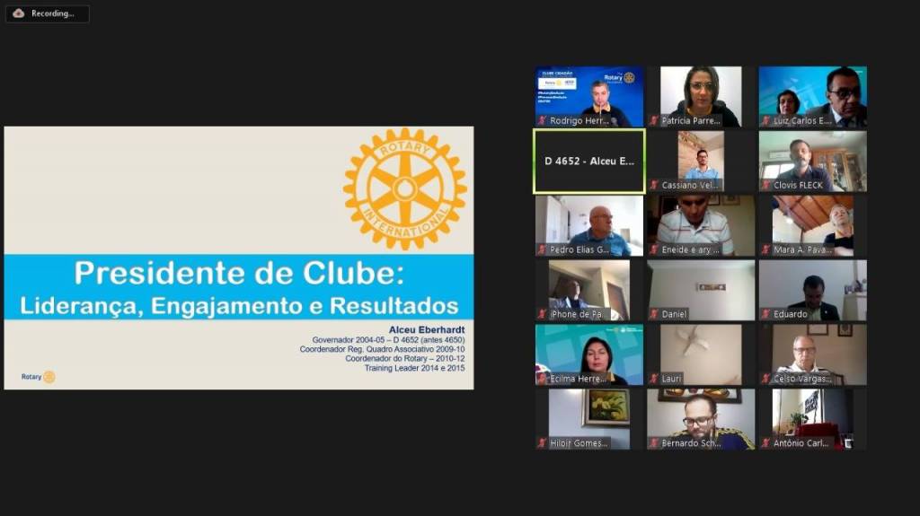 “A melhor interpretação do Rotary é a de que ele é uma filosofia espiritual, adequada às necessidades cotidianas do homem. Vamos encorajar e apoiar as forças construtivas e colocar no seu comando os Três Generais mais grandiosos que o mundo já conheceu: Fé, Amor e Coragem”. Com base nestas palavras do fundador do Rotary International (RI), Paul Harris, foi realizado no dia 17 de abril, o Treinamento dos Presidentes Eleitos (PETS) Ano Rotário 2021/2022 do Distrito 4780 de RI.  Em razão da pandemia, a capacitação aconteceu de forma remota, pela plataforma Zoom. Na oportunidade, o Governador Distrital Eleito, Ano Rotário 2021/2022, Luiz Carlos Emanuelli Vieira, agradeceu a participação de todos e apresentou o lema do ano “Servir para Transformar Vidas”. Ele também informou que, em breve, dará início às reuniões por Áreas, quando abordará com as lideranças dos clubes, as metas e propostas para o novo Ano Rotário.