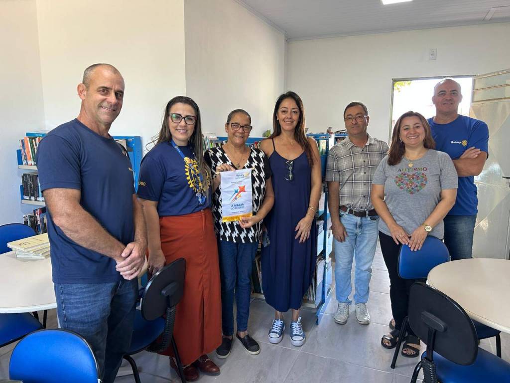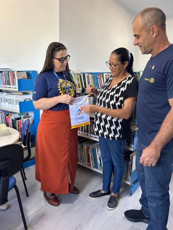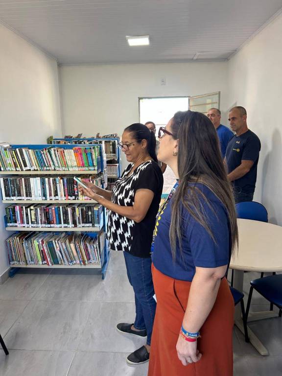 Governadora Patrícia Parreira visita a biblioteca da EMEF Telmo da Rosa e conhece projeto do Rotary Club de Bagé Minuano